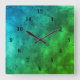 Blue green marble , rainbow-art square wall clock
