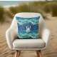 Blue Green Ocean Wave Mermaid Scales Monogram Throw Pillow