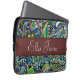 Blue Green Peacock Multicolor Funky Paisley Groovy 1960s 1970s vintage psychedelic brown pattern laptop computer sleeve with name