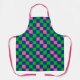 Great color and even though I ordered the kid size, it covers well enough to use during the holidays. I am not a big woman and prefer a shorter apron. I stand 5"6" and the length of the garment goes to mid-thigh. The tie straps fit well at my waist and even though there is no neck strap adjustment, the opening is plenty big enough. I am happy with the size and fit. I am sharing my apron with my 10 year old grandson, too! The color is vibrant and looks good, as shown on the website. The stitching looks strong and reinforced. Photographed is front side and back side of the apron, reinforced straps and coloring. My phone camera may not be the best at showing the details.