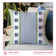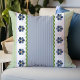 Refresh your indoor or outdoor spaces with this reversible summer throw pillow featuring blue and green pinstripes, color blocking, simple flowers, mattress ticking details, and rickrack on the front plus a classic green pinstripe pattern on the back. This design is minimalistic and modern, and it will look great in a living room, bedroom, porch, or patio.