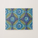 Blue Green Rustic Boho Geometric Circle Pattern Jigsaw Puzzle