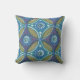 Blue Green Rustic Boho Geometric Circle Pattern Throw Pillow