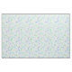White hair stylist fabric with a scattered scissor pattern in different shades of blue and green.