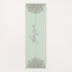 A modern attractive personalized script signature name pastel blue green yoga mat with flowery mandala universe symbol, and a trendy script typeface namaste; for your yoga practice students or your everyday exercise routine! Modern stylish design.