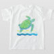 Blues, greens and yellows create this scene of marine life of a turtle and the bottom of the sea...crystalline waters allowing the yellow gold sand to show.