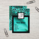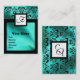 BLUE GREEN SILK DAMASK CLOTH ,SQUARE MONOGRAM BUSINESS CARD