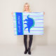 Soft fleece personalized blanket for your favorite dinosaur fan. A blue and green Stegosaurus, on matching blue/green striped blanket. Personalize with any name, on the coordinated blue/green banner across the bottom.