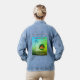 This rustic denim women's jacket displays a beautiful blue, green, and red design with the verse-But the word of the Lord endureth for ever. And this is the word which by the gospel is preached unto you. I Peter 1:25. At the top are words in red-Jesus Christ is Lord!