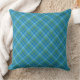 Blue, Green Turquoise Diagonal Plaid Pattern Throw Pillow