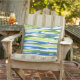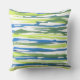 Pillow printed with abstract striped design in blue, green and white, from original watercolor painting.