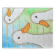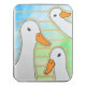This puzzle features a watercolor painting showcasing three white ducks against a blue-green background with geometric gold lines. See more modern animal gifts in our store, as well as more duck games for animal lovers.
