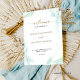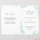This elegant wedding ceremony program design features beautiful soft watercolor stains in blue and green hues and gold speckles. Use of hand written typography details in gold. Personalize the wording in all sides. NOTE: this programs arrive flat and require folding down the middle to assemble. The default value paper is recommended. Part of our "Airy Blue and Green Watercolor" collection.