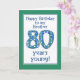 A stylish 80th Birthday Card for a Brother, with the number 80 made from a handpainted paper collage, in blue, green and white, coordinating with the lettering and the card's border. Don't forget you can easily customize the inside of this 80th Birthday Card.