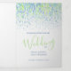 Blue, green, white abstract art wedding ceremony Tri-Fold program