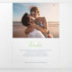 A six-page modern art watercolor dabs wedding program in shades of muted blue, lime green, spring green and white. Edit this wedding program with your own wedding names, dates, introduction, ceremony wording, wedding party attendants, space for two large photos of your couple to be married, and your love story and thanks. Original watercolor art painting and design by www.mylittleedenweddings.com (Photo holder to replace with your own, with thank from Victor Pinto at Unsplash)