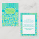This modern and chic turquoise blue, apple green, and white striped floral damask reception enclosure card matches the wedding invitation shown below. You can also use it as a map or directions card or wedding information card by changing the text accordingly. ****PLEASE NOTE that everything will print as you see it on your monitor. I will not see your product and Zazzle will NOT edit anything for typos, alignment etc., so please make sure all your text is centered and error-free. If you need assistance, please email me BEFORE you place your order. If you require any matching items, please email your request to niteowlstudio@gmail.com.