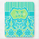 Blue Green White Striped Damask Monogram Mousepad