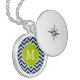 Blue & Green Zigzags Pattern Monogram Silver Plated Necklace