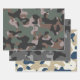 A trio of camouflage wrapping paper sheets in green, grey and blue. Please see all photos.