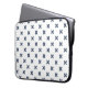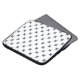 Blue-grey cross stitches on white laptop sleeve