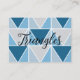 Blue Grey Geometric Triangles Modern Business Card designed by Nisha Prabhu. Fully Customizable. Personalize with your details. The Blue Grey Geometric Triangles Modern Business Card showcases a sleek and contemporary design. The card features a combination of shades of blue and grey arranged in a geometric triangle pattern, exuding a sense of professionalism and sophistication. The triangles vary in size and orientation, creating a visually dynamic and eye-catching layout. The blue and grey colors blend harmoniously, adding a touch of elegance to the overall design. This modern business card is perfect for professionals in various industries who want to make a lasting impression with a stylish and sophisticated aesthetic.