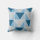 Blue Grey Geometric Triangles Pattern Throw Pillow