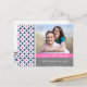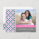Wedding custom photo save the date announcement postcards in elegant and contemporary charcoal gray, dark navy blue, fuchsia hot pink and white fun and casual retro circles and diamonds bold geometric pattern, stylish and fully customizable with your wedding details and your own photo. Also available in many other products for the wedding party.
