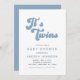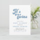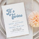 Blue Groovy Retro Boy Twins Minimal Baby Shower Invitation