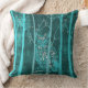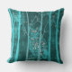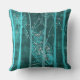 Bold accent cushions. Decorative owl and tree silhouette design on a blue texture background.