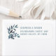 A minimalist watercolor painted wedding thank you card return address label featuring an elegant and simple floral close-up with your first names and address.
