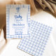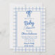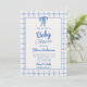 Blue Hand Drawn Bow Gingham Boy Baby Shower Invitation