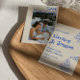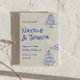 The matter paper is our sample of choice -- it's a reasonably priced, good quality, nice feeling paper stock. We were a little concerned the muted rustic blues might not reproduce all that well (usually by light colored samples), but they're just gorgeous! The white lettering is perfect in combination with the blue background, and the typography is all easy to read.