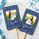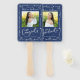 Stay cool while supporting your favorite grad as they receive their diploma with this quirky, whimsical, simple, modern keepsake 2 photo hand fan. Fun white handwritten script typography and hand drawn graduation icon sketch doodles overlay a navy blue background. The copy “congrats” and photo 1 are on the front, the word “graduate” and photo 2 are on the back. Personalize the custom text with your graduate’s name, school and class year. Matching invites, thank you cards, stickers, banners, yard signs and other graduation goodies are also available in this trendy and playful collection. Guaranteed to preserve cherished memories of their special occasion!