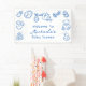Doodle baby shower welcome banner in blue and white features a whimsical hand-drawn stork illustration and playful lettering, creating a warm and inviting focal point for your celebration of a baby boy. Set against a crisp white background, the freehand style text and sketch art bring a casual, modern charm that’s perfect for a boy baby shower. The minimalist design and soothing color palette make this banner ideal for decorating entryways, gift tables, or photo backdrops while maintaining a cohesive aesthetic with matching doodle-themed baby shower decor.
