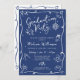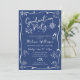 Be proud, rejoice and showcase this milestone of your favorite grad! Send out this quirky, whimsical, simple, modern, personalized invitation for an event to remember. Fun, white handwritten script typography and hand drawn graduation icon sketch doodles overlay a navy blue background. On the back, their name and a hand drawn cap and diploma in navy blue overlay white. Personalize the custom text with your grad’s name, school, class year and party info on the front. Matching save the dates, thank you cards, banners, welcome signs, posters and other graduation goodies are also available in this trendy and whimsical collection. Guaranteed to add stylish fun to their special occasion!