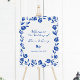 Blue Hand Drawn Flower Wedding Welcome Sign