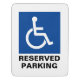 Blue square handicapped parking sign with wheelchair icon. Custom disabled parking symbol. Signs for restricted park area. Make your own accessibility signage for business and store. Create your own unique personalized car park warning notice. Professional simple notice for parking lots or garage at school, shop, store, office center, restaurant, corporate company, shopping mall, wedding event, entrance, private properties, drive way, real estate, hospital, clinic, doctors office, dentist etc. White or custom background color. Reflecting optional. Modern typography template. Letters can spaced out or made smaller. Make personalized parking space logo graphics for invalid employees, staff, personnel, co worker, colleague, coworker, husband, wife, teacher, clients, visitors, guests etc. Add all others will be towed warning optionally.