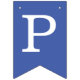 The flags have alternating nuances of blue, from darker to lighter blue. The letters are white, The message is "Happy Birthday" followed by a 3 letters name that you should change letter by letter (the default is Tom).