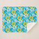 Blue Hawaiian Hibiscus Floral Pattern Sherpa Blanket