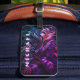 The Hawaiian luggage tag design with tropical leaves and flowers captures the essence of the lush, vibrant beauty of the Hawaiian Islands. The tag features a backdrop of rich, emerald- blue and, purple, and lavender leaves, reminiscent of the abundant foliage found throughout the tropical paradise. The leaves are intricately detailed, showcasing their unique shapes and textures, creating a sense of depth and authenticity.
