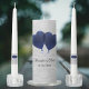 Personalize special candles for your wedding ceremony with a Blue Heart Balloons Wedding Unity Candle Set. Candle design features a pair of heart balloons against a delicate lace damask background. Personalize with the groom and bride's names along with the wedding date, and taper candles with surnames. Additional wedding stationery and gifts available with this design as well.
