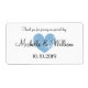 Custom light pastel blue heart wedding water bottle labels. Personalized elegant waterbottle sticker template with weathered vintage heart. Stylish script typography for names of bride and groom and thank you message. Use as classy table decoration or thank you favor for guests at the party. Logo includes name or monogram plus date of marriage. Romantic country chic design with rustic print. Also good for beach theme weddings. Also great as wine label.