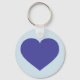 This keychain features a shapely blue heart on a light blue background.