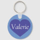 This keychain features a shapely blue heart on a dark blue background overlaid by customizable text. Change "Valerie" to whatever text you choose.