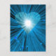 Modern design with a shining, sparkling blue and white heart on a glowing blue, white and black background. Postcard with a blue, black and white customizable design for you to personalise with your own text, images and ideas. Created by Jess Perry using original photographs and digital techniques.