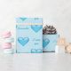 Destei's blue heart shape illustration on a light blue background color. There is also text that reads: "I love you" together with a personalizable text area for a name. Great for Valentine's Day for wrapping a gift for that special someone in your life, for example.