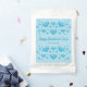 Destei's blue hearts in different sizes on a light blue background color. There is also text that now reads "Happy Valentine's Day" together with a personalizable text area.