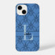 Blue Hearts Pattern Monogram and Name Custom iPhone Case