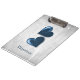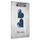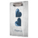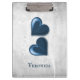 Jot down notes and reminders on a secure surface with a Blue Hearts Personalized Clipboard. Clipboard design features a a pair of hearts, a soft white leafy vine against a light gray grunge background with an area to personalize with your name. Additional gift items available with this design as well as a variety of colors.